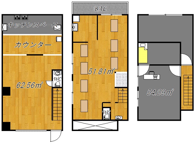 | 物件設備 | トイレ/専用設備給湯室/専用24時間利用可排気ダクトカウンターキッチン・厨房看板スペース什器設備 | ||